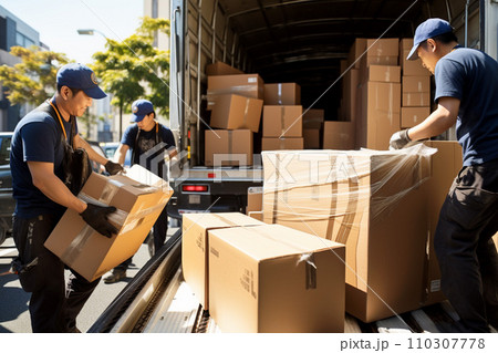 搬運工將貨物裝載到卡車上:人工智慧生成的圖像