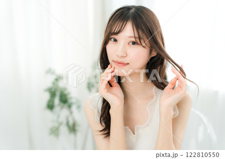 美容美髮沙龍中的年輕亞洲女性模特兒形象