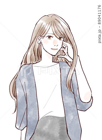毛衣連衣裙女3DCG插圖素材刷頭髮