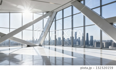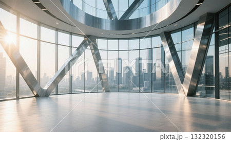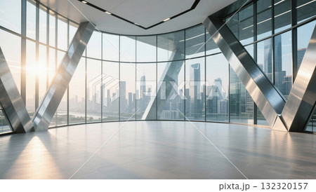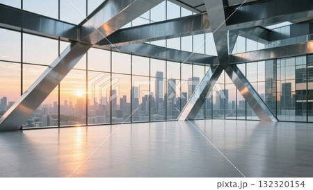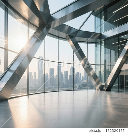 可看城市天際線玻璃幕牆鋼結構的室內空間