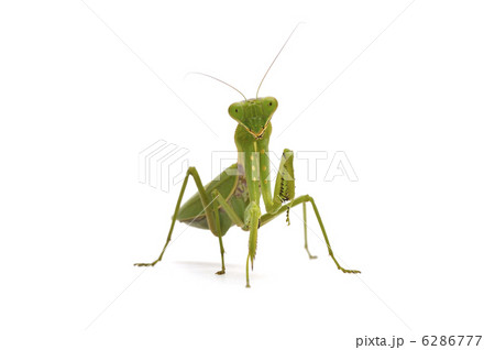 白色背景上的黃腹螳螂