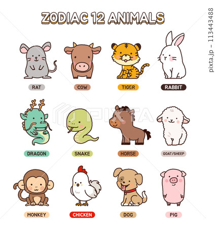 asia 12 animal zodiac character illustration