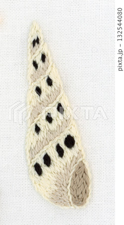 白色尖頭海螺殼刺繡