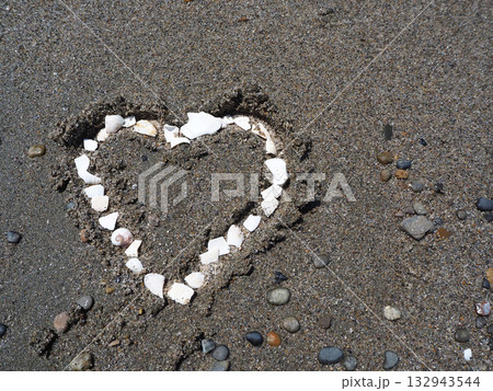 沙灘上畫著的心型圖案