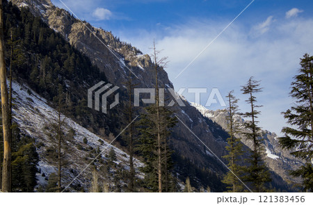 Wide-Angle Shot of a Mountainside with Evergreen Trees in Kalam, Pakistan