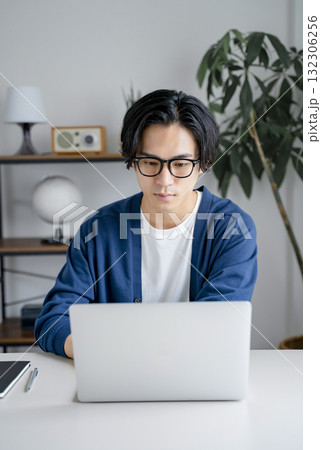 A thoughtful and confused Asian female medical student is working on her research on her laptop.