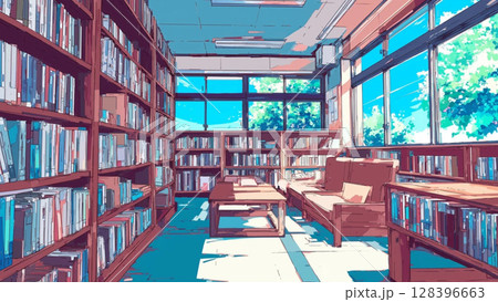 午後圖書館背景插畫、縮圖、Youtube、部落格、素材、無人
