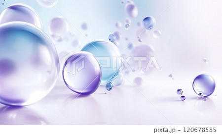 優雅的 3D 氣泡,表面光滑,散佈在藍紫色漸變背景上。