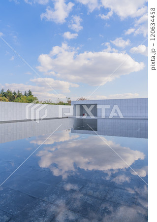 天空白牆和水面的倒影