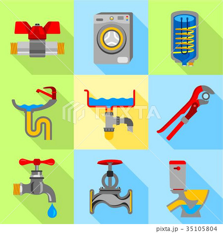 Plumbing icons set, flat style