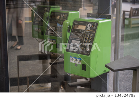 日本東京城市景觀:金融和經濟中心丸之內辦公區的公用電話