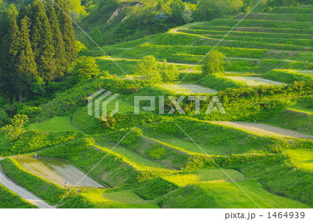山形縣/夏季“鹿村梯田”(鹿村梯田/豐牧梯田)日本100個梯田