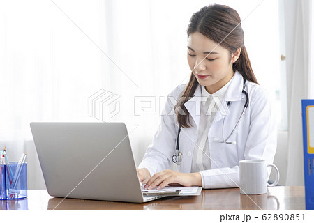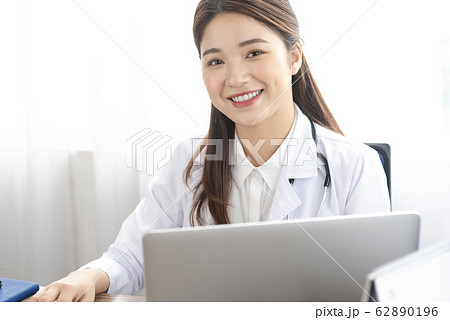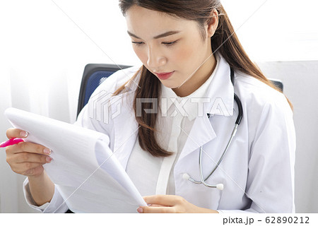 An Asian doctor is using his stethoscopes for doing physical examination in clinic.