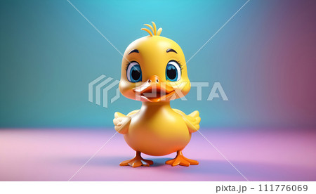 3d rendering of a cute cartoon yellow duckling on a blue background. Generative AI