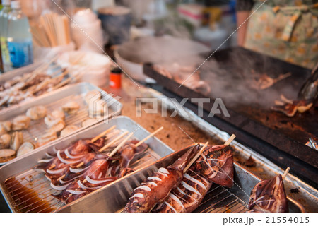高中生們在校園慶典上一邊製作章魚燒一邊販售的青春笑容