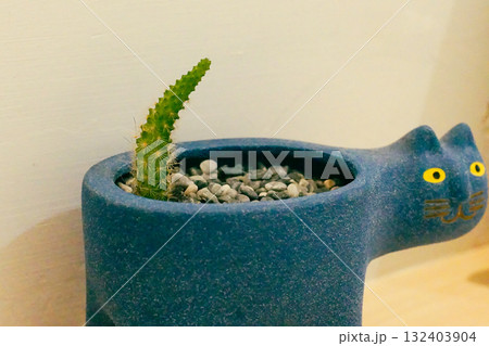三花貓與香草盆栽的午後時光