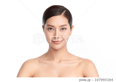 Beautiful young asian woman with clean fresh skin on white background, Face care, Facial treatment, Cosmetology, beauty and spa, Asian women portrait.