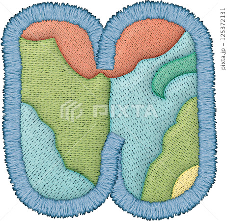 Colorful alphabet patchwork letter lowercase m with intricate embroidery and textile design