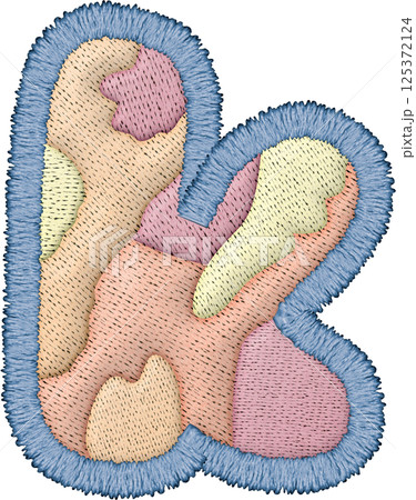Beautiful alphabet patchwork letter lowercase k with embroidery in soft pastel colors and textile texture