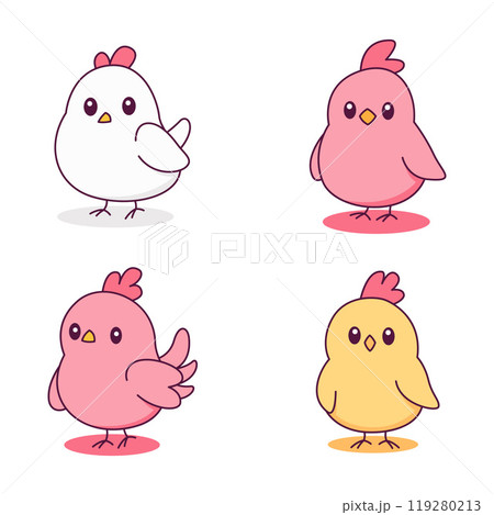 Simple Cute Chicken Chick Hen Poultry Animal Cartoon Character