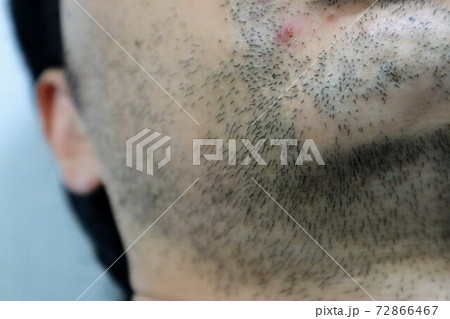 一個男人用鑷子拉出鬍子埋葬的頭髮的特寫