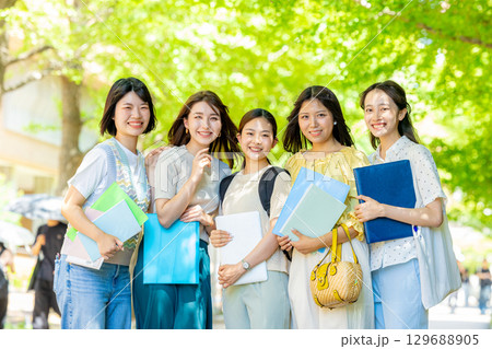 Group of multicultural students sitting in the courtyard of university, chatting and studying together, preparing for lessons
