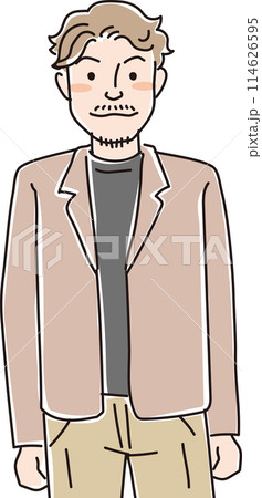一幅簡潔的線條畫,描繪了一位留著鬍鬚的年輕男子的側面肖像。