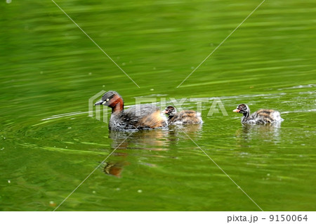 Kaizuburi和幼鳥在寺廟公園的池塘