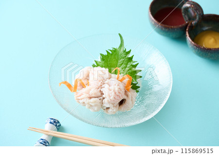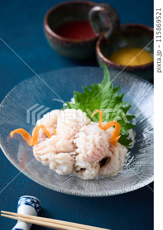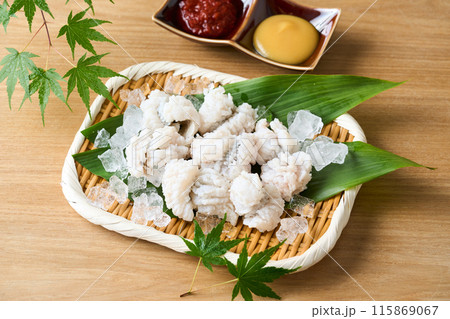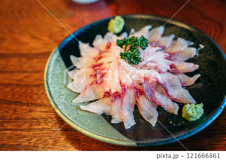 新鮮的senmai生魚片配芥末醋味噌的照片