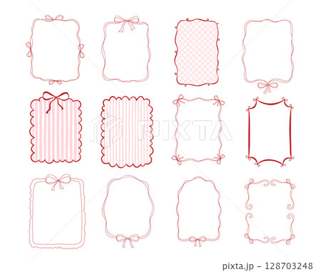 Hand drawn coquette bow borders collection. Cute pink ribbon frames set.