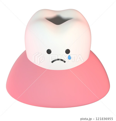 一張哭臉的齲齒和牙齦角色的 3D 插圖
