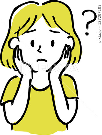 陷入困境的女人的插圖(手繪風格,煩惱,疑慮) 陷入困境的女人用手托著臉頰的插圖