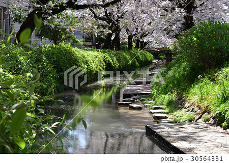日本的春天日本神奈川縣川崎市的Nikkaku灌溉水沿岸排成一排櫻花樹(小杉武藏附近)