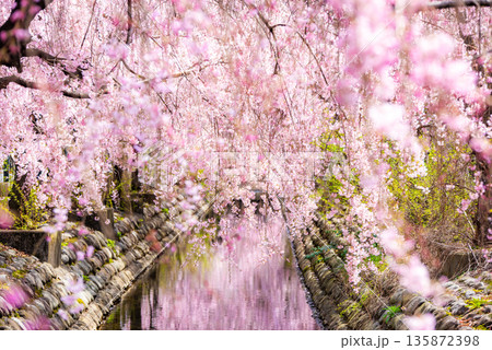春天,櫻花在水邊盛開(川崎市二賀陵灌溉渠道)