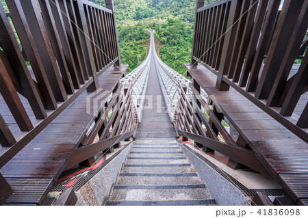 台灣台灣屏東縣山區河流Sanji Sanchi門Ruri吊橋台灣屏東縣台灣Pinton屏東縣