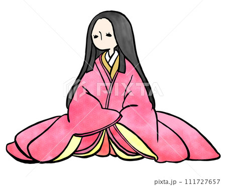 身穿平安繪捲式十二件長袍的女性形象插圖