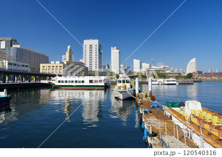 橫濱港未來的城市景觀 - 停泊在港口的船隻和橫濱的城市景觀[神奈川縣/橫濱市]