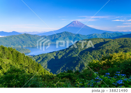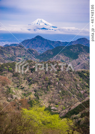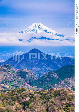 《神奈川縣》春季從石久之花盛開的箱根富士山