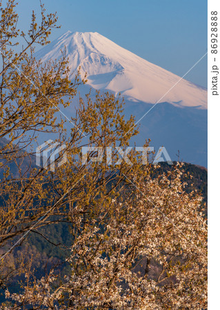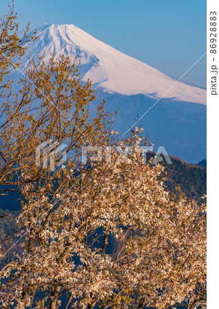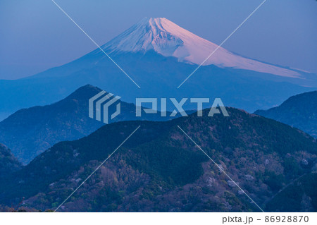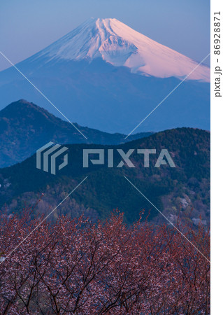 (靜岡縣)從櫻花盛開的葛城山看到的富士山,黎明