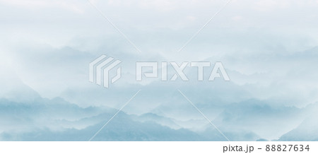 中國水墨風格鳥瞰綿延起伏山脈景觀天際線