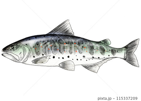 amago的色鉛筆,一種具有婚禮顏色的淡水魚