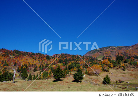 (群馬縣)從Manza溫泉一側看到的秋天山田農場和山脈
