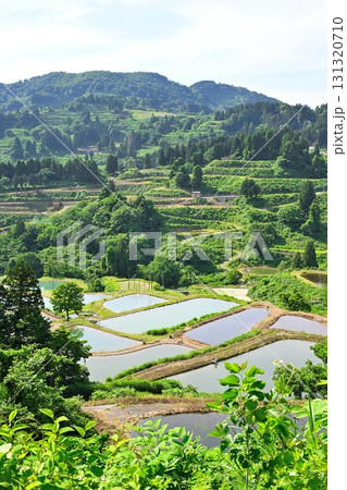 《新潟縣》山越的梯田,夏季梯田的原始景觀