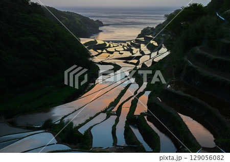 [秋季素材]收穫時節中野梯田的日出[山梨縣]