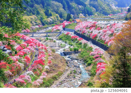 長野縣、下伊那郡、阿智村、千里、花桃、花桃之鄉、春天、四月、櫻花、桃花、里山、日本風景、鄉村、山村、