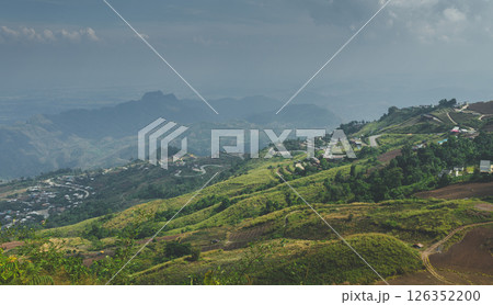 Aerial view of sperone tower dominating green irpinia valley, italy