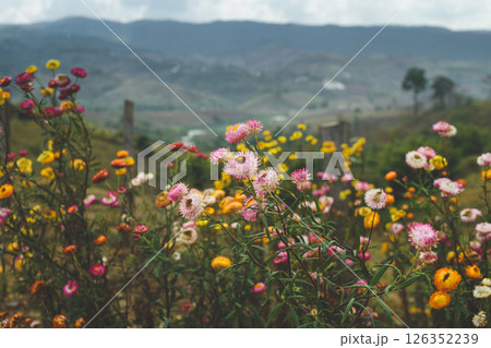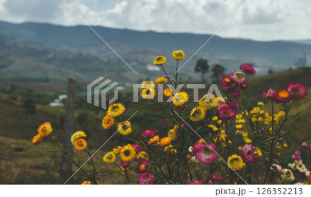 scenic of Italy - Castelluccio di Norcia village, blooming fields and meadows. region Umbria