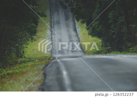 Pink cherry blossom of sakura tree tunnel at Nishi Park, Kyushu, Japan