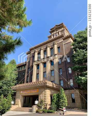 抬頭仰望,名古屋市政廳主樓在湛藍的秋日天空下巍然聳立(愛知縣名古屋市)