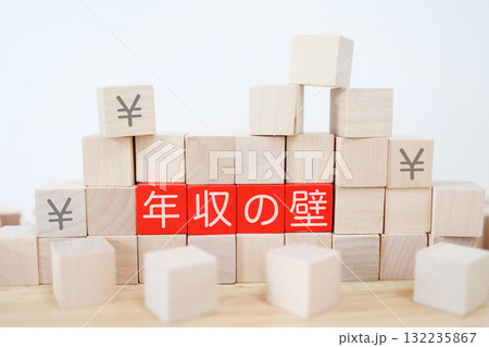 以積木形式表達的年收入牆形象概念。